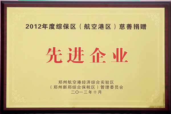 瑞光包裝榮獲“2012年度綜保區(qū)(航空港區(qū))慈善捐贈(zèng)先進(jìn)企業(yè)”