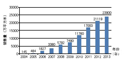 根據(jù)中國印刷及設(shè)備器材工業(yè)協(xié)會對全國版材生產(chǎn)企業(yè)的統(tǒng)計顯示,2013年我國本土實(shí)際生產(chǎn)膠印版材總產(chǎn)量已達(dá)3.46億平方米。其中,CTP版的生產(chǎn)量為2.45億平方米,同比增長11%;CTP版的總銷售量達(dá)2.39億平方米,同比增長13%。  我國CTP版的起步階段較長,2004年國內(nèi)CTP版基本依靠進(jìn)口。然而經(jīng)過近十年的努力,現(xiàn)在我國本土生產(chǎn)的CTP版除了可滿足國內(nèi)不斷增長的需求之外,還有較大量的出口。特別是2010~2013年,國內(nèi)CTP版用戶數(shù)量大增,促進(jìn)了CTP版產(chǎn)銷量直線上升。圖1顯示出2004~2013年我國本土生產(chǎn)的CTP版銷售量情況。