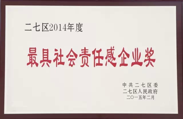 賀:瑞光印務(wù)獲二七區(qū)2014年度最具社會責任感企業(yè)獎
