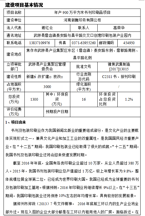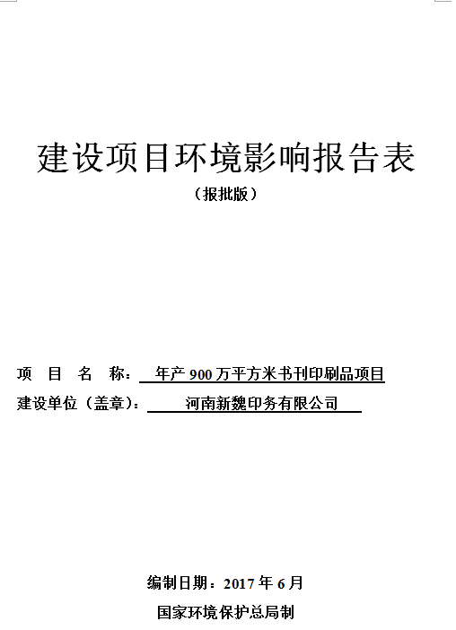 河南新魏印務(wù)有限公司年產(chǎn)900萬平方米書刊印刷品項目