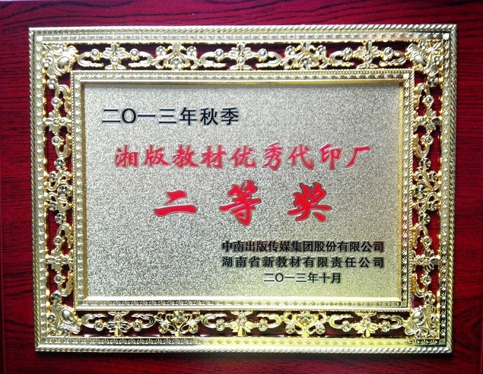 我公司印制的湘版教材由于印制質(zhì)量、周期良好,及服務等整體突出,在中南出版?zhèn)髅郊瘓F股份有限公司、湖南省新教材有限責任公司2013年23家代印廠綜合考評中表現(xiàn)優(yōu)異,榮獲“湘版教材優(yōu)秀代印廠二等獎 ”。